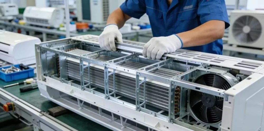 Тоңазытқыштар мен кондиционерлердің сыртқы қабықшасы мен ішкі тірек компоненттері үшін қолданылады; кір жуғыш машиналарға арналған негізгі жақтаулар; дисплейлерге арналған жақтаулар мен жақшалар; қадаларды зарядтауға арналған сыртқы қабықтың жақтауы және ішкі өткізгіш тірек компоненттері және т.б. Жеңіл, жоғары дәлдік және эстетикалық жағымды бет қажет және тесу және иілу сияқты қосымша процестерді біріктіруге болады.