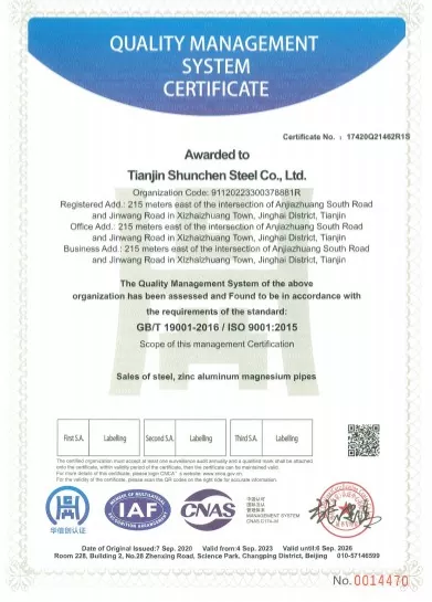 Тяньцзинь темір-болат өнеркәсібі базасының ресурстарына сүйене отырып, жаппай өндіріс уақтылы жеткізуді қамтамасыз етеді. Өнімнің бетінде тотығу және тот жоқ, күшті сапалы консистенция және тамаша тұрақты жеткізу мүмкіндігі бар. Shunchen Industrial компаниясын таңдау арқылы сіз 10000 юань жою арқылы жеткілікті қолдау көрсете отырып, өндіріс пен сатуды біріктіретін бір терезе сатып алу қызметтерін пайдалана аласыз.