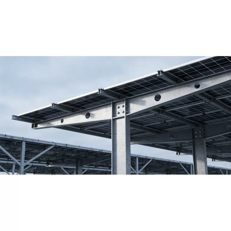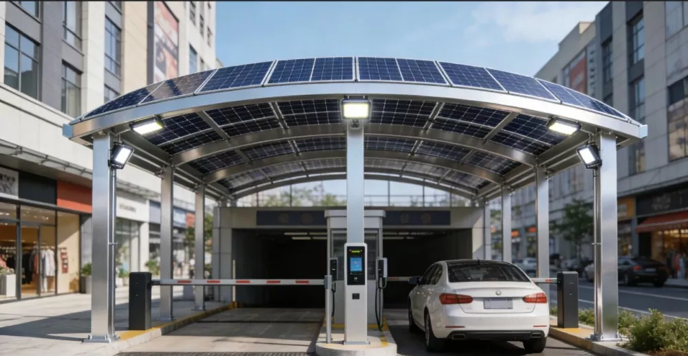 Shunchen Industrial компаниясының Solar Carport құрылымы әртүрлі функциялармен және нақты орналасумен мақтана алады. Негізгі тұрақ қорғау құралы ретінде ол күн сәулесінің әсеріне, жаңбыр мен қар қысымына тиімді қарсы тұрады, көлік бояуы мен бөлшектерін жан-жақты қорғауды қамтамасыз етеді және тұрақ жайлылығын арттырады. Бір мезгілде ол фотоэлектрлік электр станциялары үшін тамаша платформа ретінде қызмет етеді, фотоэлектрлік модульдер үшін тұрақты негізді қамтамасыз етеді, панельдердің оңтайлы көлбеу бұрышында күн энергиясын алуын қамтамасыз етеді және құрылымның тұрақтылығы мен қауіпсіздігіне кепілдік беретін жүктемені іргетасқа біркелкі таратады. Сонымен қатар, бұл құрылым қуатты түрлендіру және пайдалану мүмкіндіктеріне ие, күн энергиясын желіге қосылу немесе жергілікті тұтыну үшін электр энергиясына түрлендіру, мысалы, зарядтау станцияларын қуаттандыру, парктің электр энергиясына қажеттіліктерін қанағаттандыру, таза энергияны алмастыруды ынталандыру және электр энергиясының шығындарын азайту. Ең бастысы, ол көп сценарийді бейімдеуді қолдайды және зарядтау станцияларымен, смарт жарықтандырумен, бақылау жүйелерімен және т.б. біріктіріліп, «тұрақ + қуат өндіру + зарядтауды» біріктіретін біріктірілген смарт тұрақ шешімін жасауға болады.